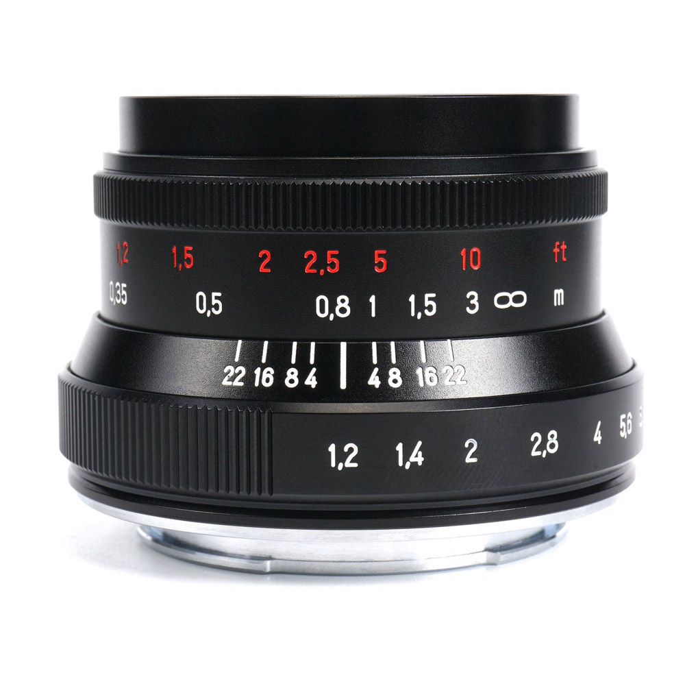. Este objetivo combina una gran apertura con un diseño compacto, cuerpo de aluminio y mecanismos de acero. Diseño retro para cámaras sin espejo.