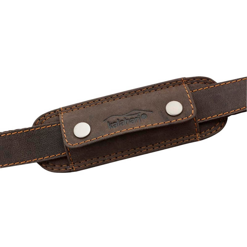 Hombrera en piel apta para correas de 3,5cm de ancho y pensada especialmente para la serie de bolsas kalahari Kaama. Fabricada en piel y en la parte posterior dotado de una almoadilla antideslizante. Se pone y quita rapidamente mediante un sistema de botones.