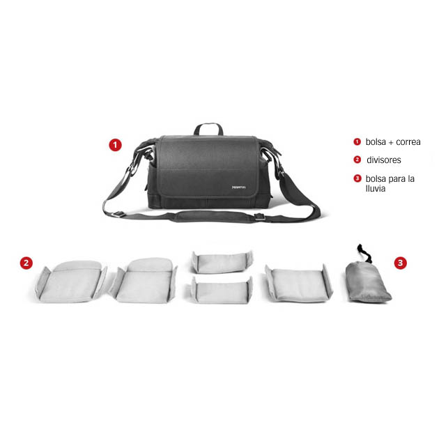 - Bolsillos laterales y un gran bolsillo frontal para accesorios pequeños como baterías, filtros, tarjetas de memoria o smartphones.