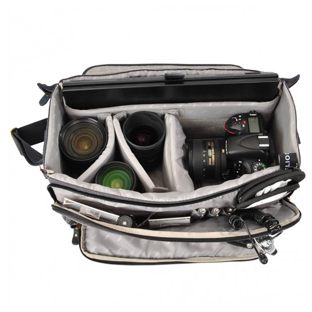 La Kalahari K-34 es una bolsa espaciosa y resistente, ideal para fotógrafos profesionales que necesitan llevar todo su equipo de forma cómoda y organizada. Su interior configurable permite transportar dos cámaras DSLR con empuñadura, junto a teleobjetivos largos o lentes más pequeñas, y cuenta además con espacio para un portátil de hasta 15”.
