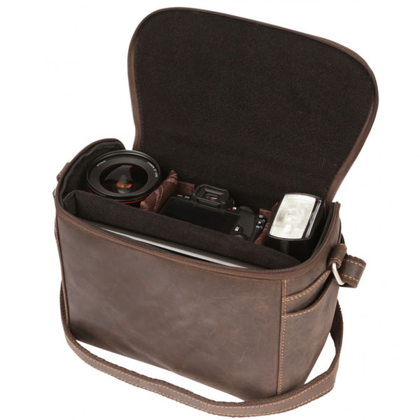 La bolsa está diseñada para cámaras sin espejo con accesorios, cámaras con zoom y videocámaras, ofreciendo una organización óptima gracias a sus divisores acolchados. Los bolsillos laterales exteriores permiten llevar fácilmente un teléfono, baterías de repuesto u otros accesorios, mientras que en la tapa del compartimento principal se incluyen dos ranuras para tarjetas de memoria. Además, cuenta con un bolsillo frontal con cremallera para guardar objetos pequeños de forma segura.