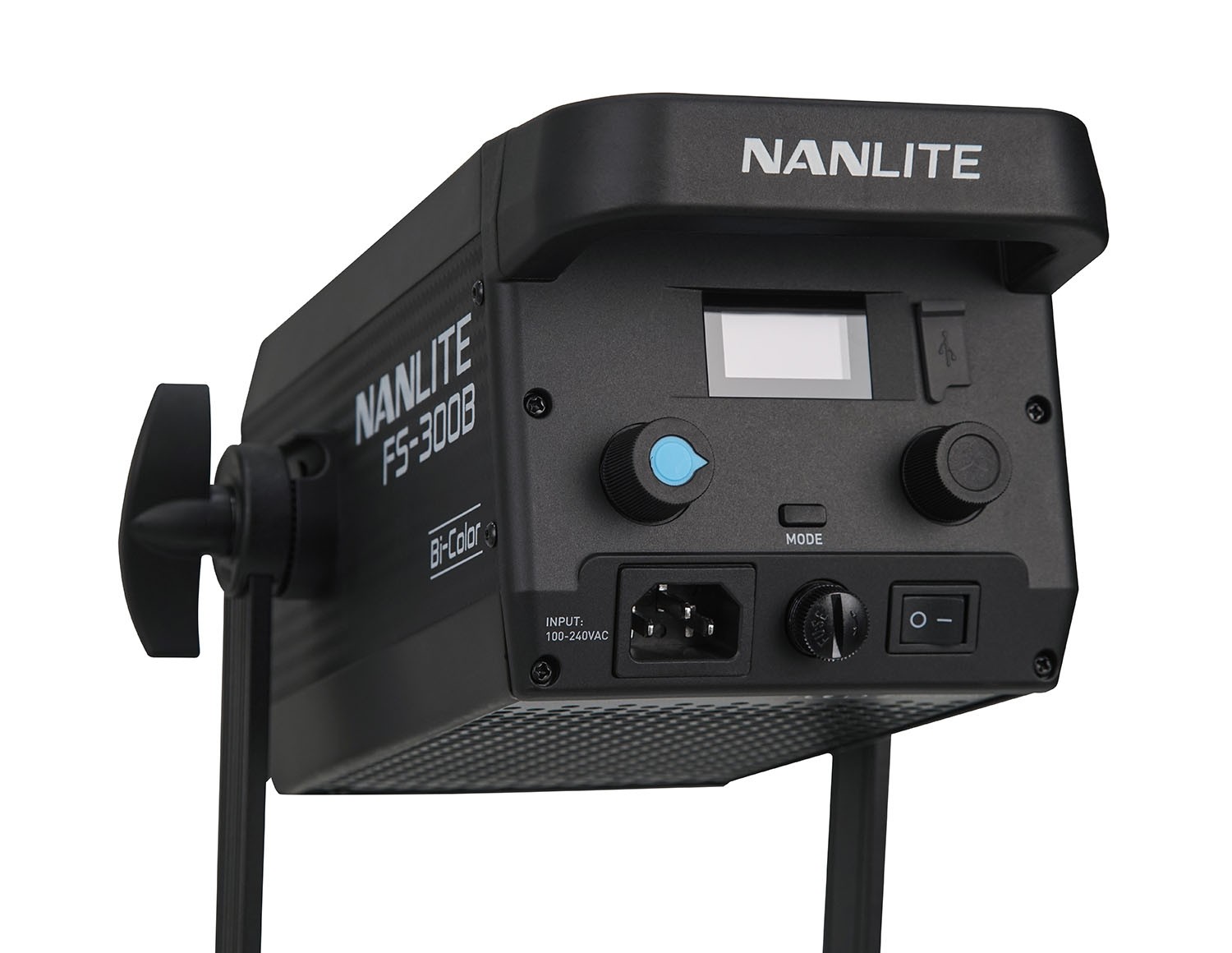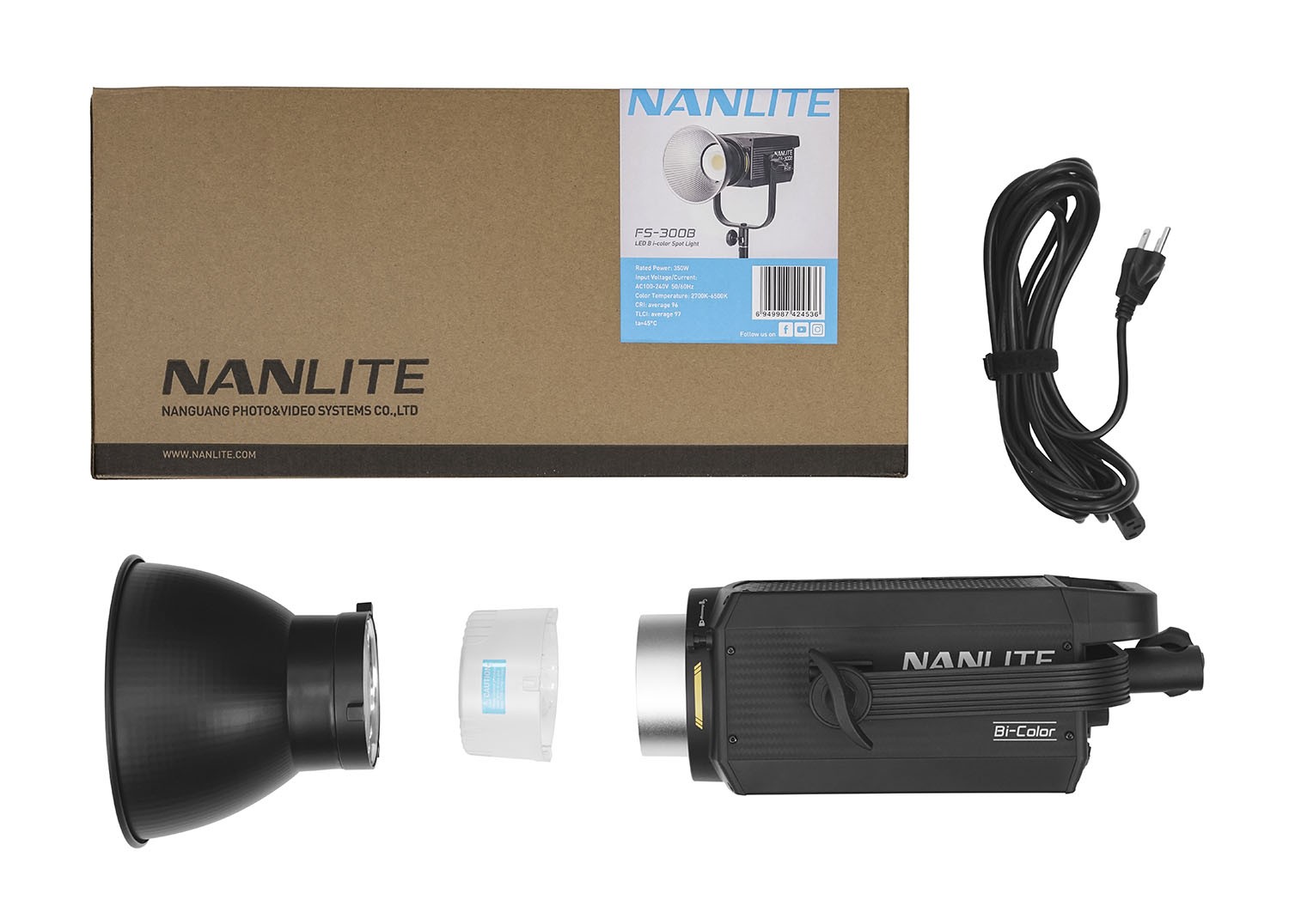 Foco Nanlite FS-300B proporciona una luz suave potente Bi-color y uniformemente distribuida. El foco FS-300B con luz natural equilibrada de NANLITE adopta una nueva y audaz tecnología de iluminación, que es de mayor tamaño en comparación con los LED COB, pero produce una luz más potente, más eficiente y uniforme. Esta hace que el FS-300B sea capaz de entregar un alto rendimiento de hasta 38720Lux @ 1m (con reflector), que produce un haz de luz uniforme y suave. Sistema integrado de refrigeración. Compacto, todo en un cuerpo combina la unidad de control, el adaptador de corriente y la lámpara led integrada. El diseño hace que el FS-300B de Nanlite sea más compacto y liviano sin perder potencia.